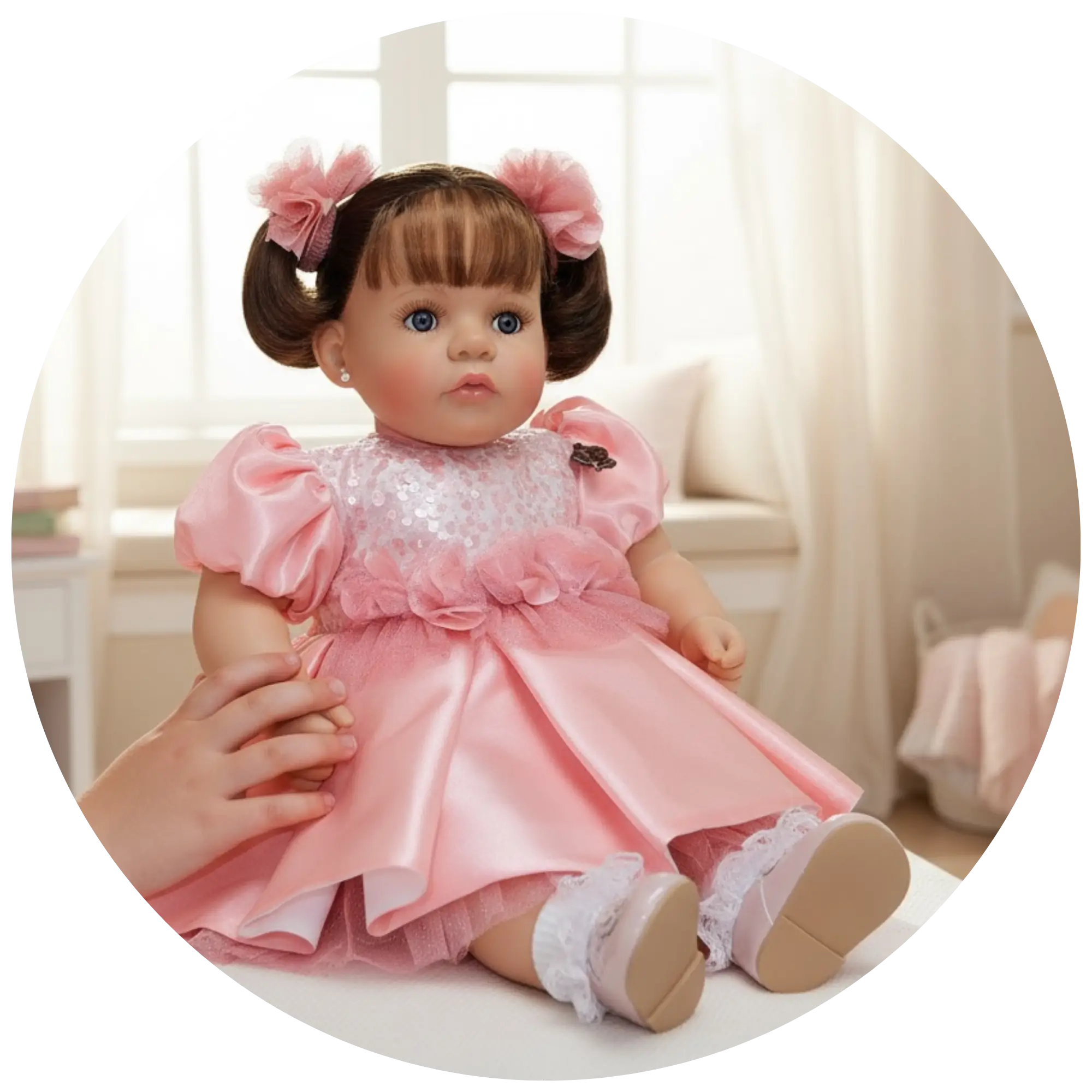 ¡Descubre a Abril, la muñeca de colección que deslumbra con su elegancia y encanto! Con una altura de 48 cm y un peso de 1.020 kg, Abril está vestida con un precioso vestido de tafeta adornado con flores de gasa y lentejuelas, que le aporta un toque de brillo y sofisticación. Su diseño único y delicado la convierte en la compañera perfecta para quienes buscan una amiga especial y llena de estilo.